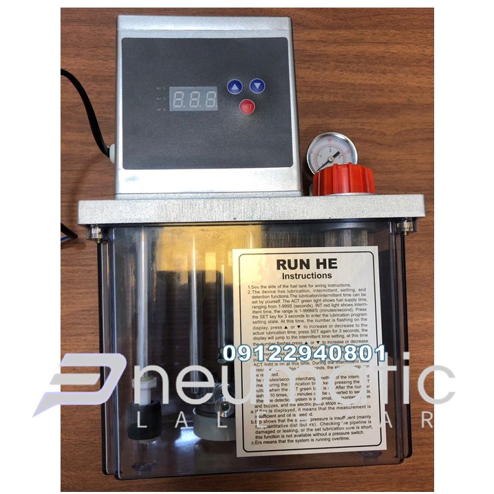 • ظرفیت مخزن: حجم مخزن ذخیره روغن یا گریس (بر حسب لیتر، سی‌سی یا کیلوگرم برای گریس).